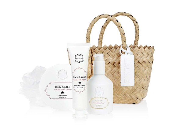 מארז לדוגמא: מארז פינוק הכולל תיק יד קלוע, ספוג רחצה, קרם ידיים 100 מ"ל, קרם סופלה 200 מ"ל ושמן רחצה 250 מ"ל ב129.90 ₪ במקום 249.50 ₪ .